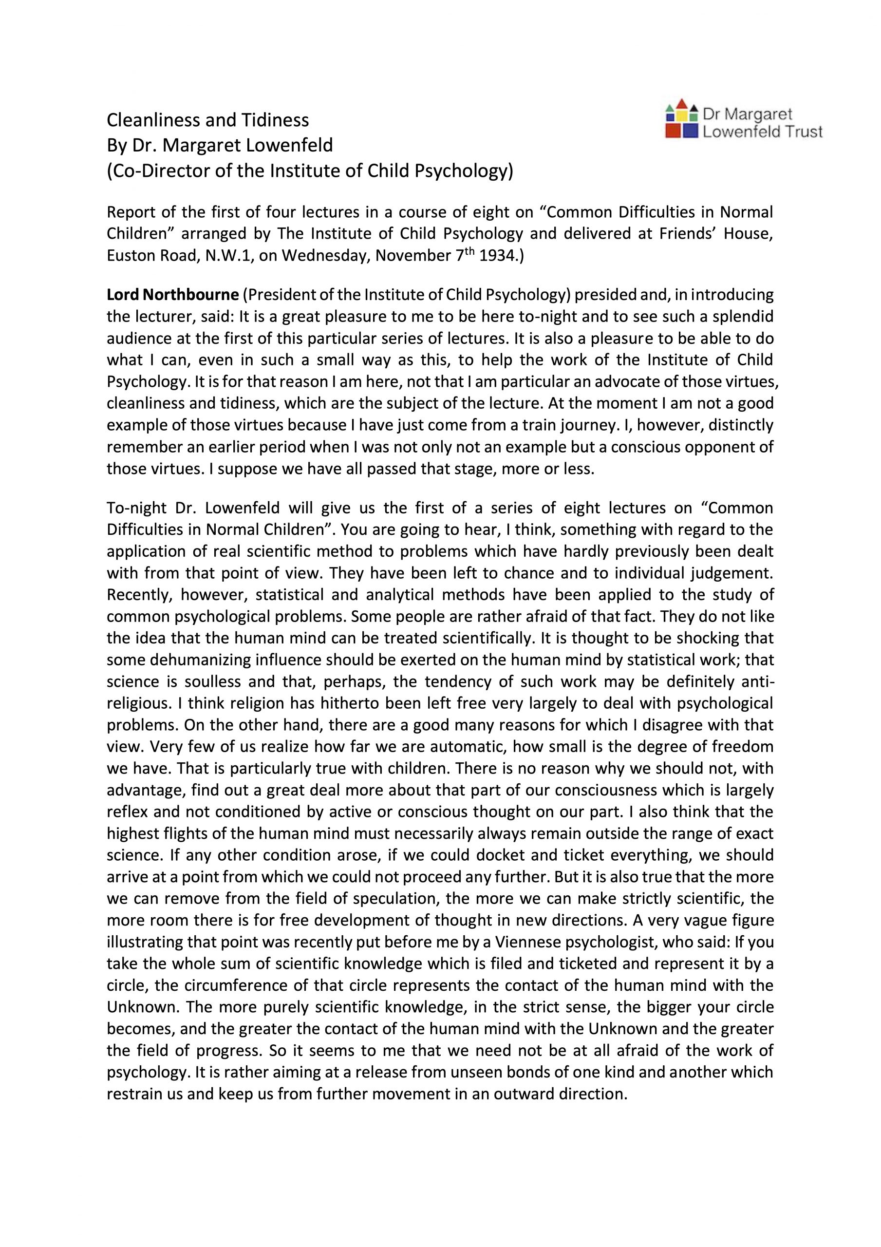 By Ville Andersen, D.I.C.P. on the work of Margaret Lowenfeld